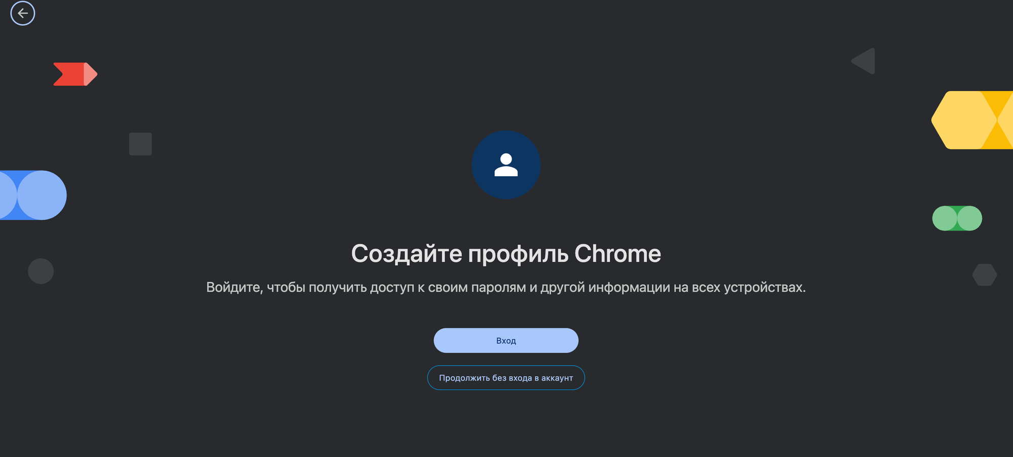 Далее появится окно создания профиля, здесь мы можем войти в аккаунт Google или продолжить без входа в аккаунт. На данном этапе нам нужна вторая функция.