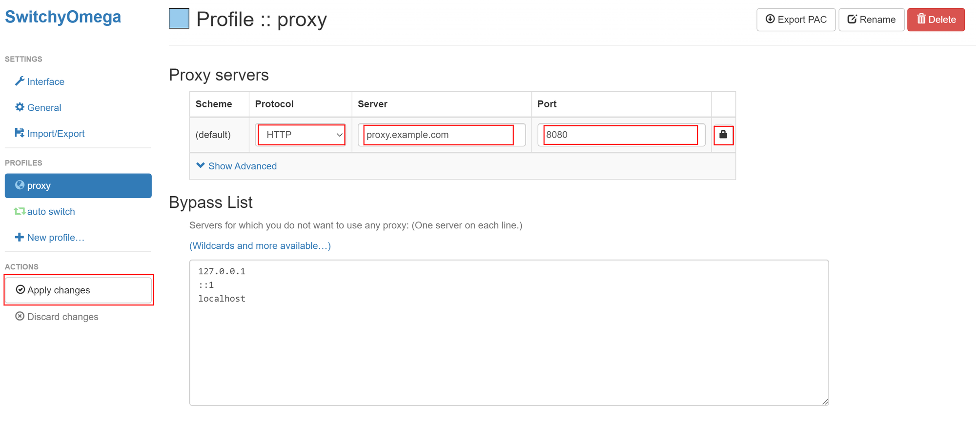 Proxy SwitchyOmega