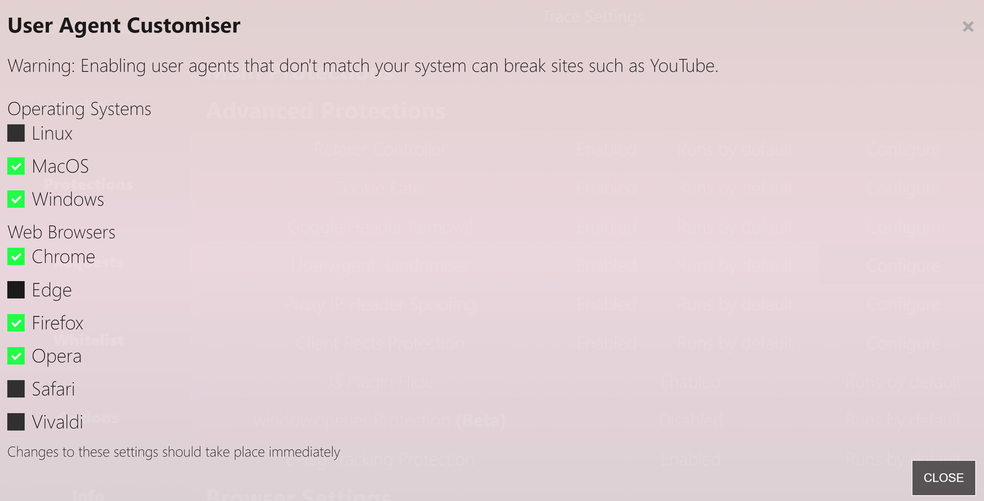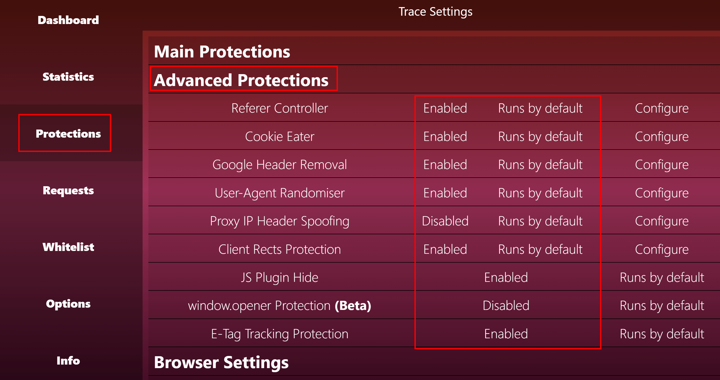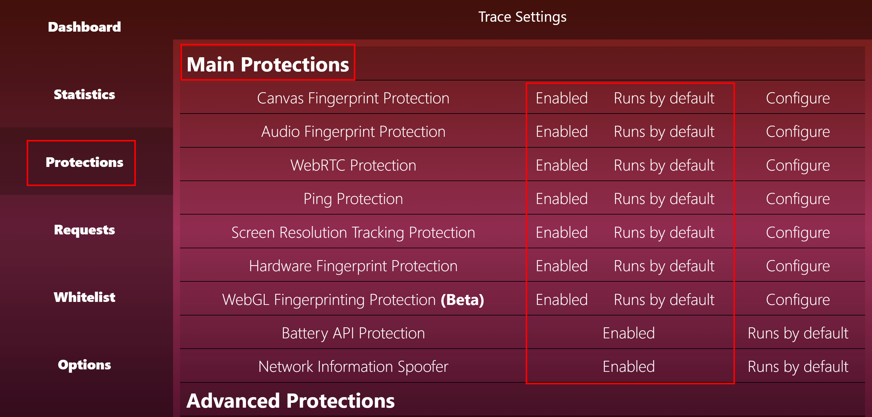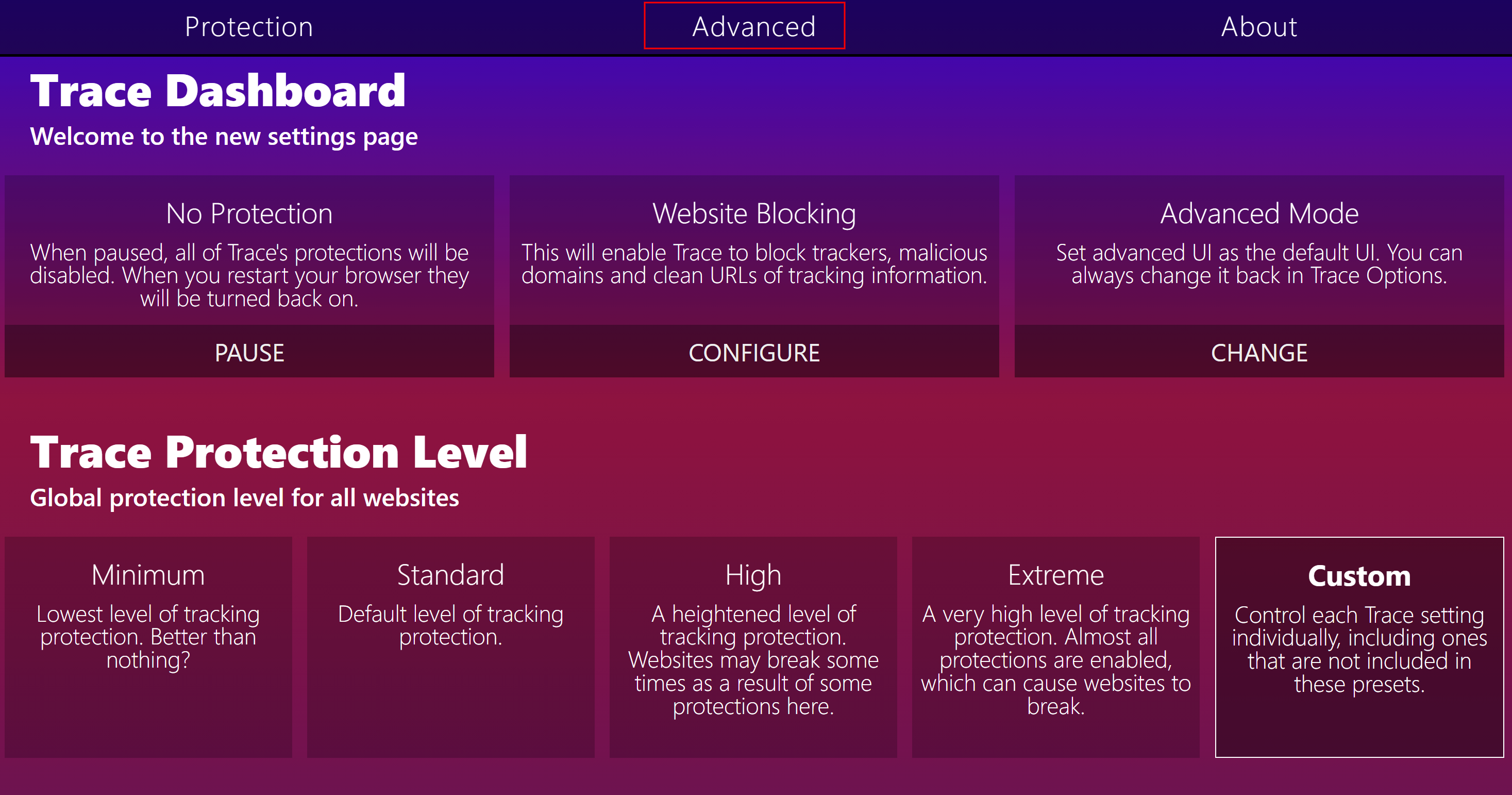Для смены отпечатка воспользуемся ещё одним расширением – Trace. После скачивания откроется дешборд расширения. Нажимаем Advanced.