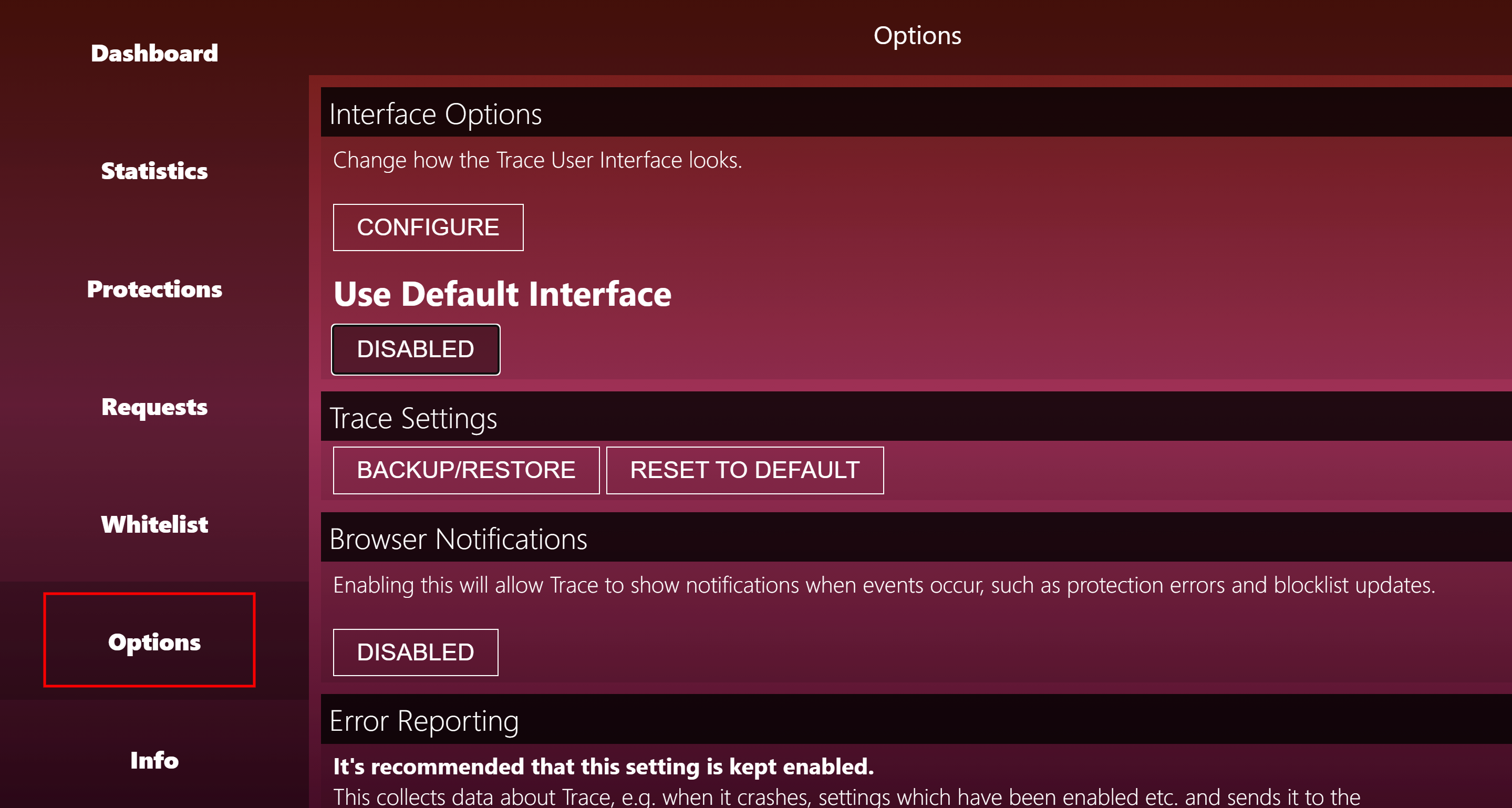 В первую очередь открываем Options и переключаем ВСЕ кнопки на этой странице на Disabled