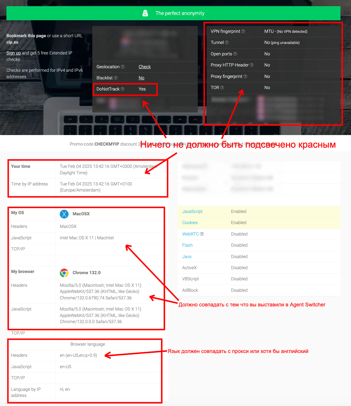 Проверка прокси и отпечатка