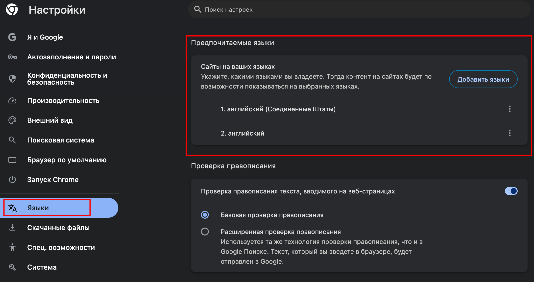 Если браузер на русском – обязательно меняем хотя бы на английский