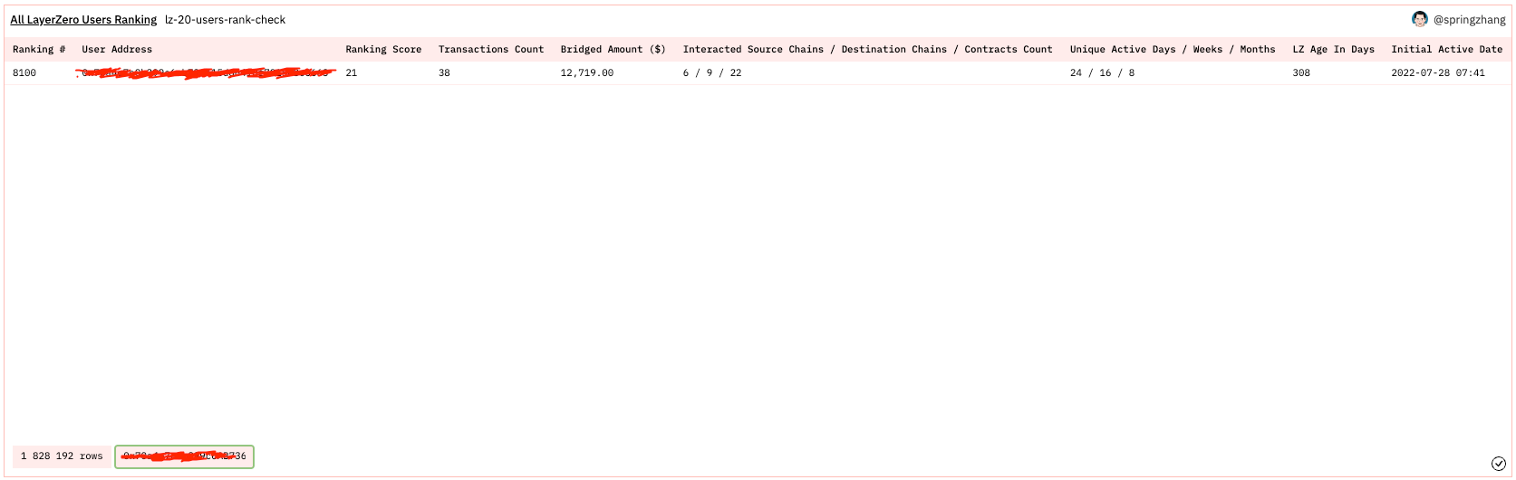 - Количество активных дней, сколько времени прошло с момента первого контакта с LayerZero.