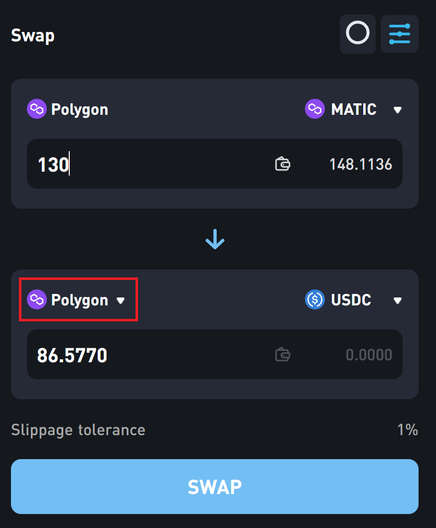 3) Теперь бОльшую часть MATIC свапнем на какой-нибудь стейблкоин внутри сети Polygon, чтобы потом гонять его по нашим сетям, вот так: