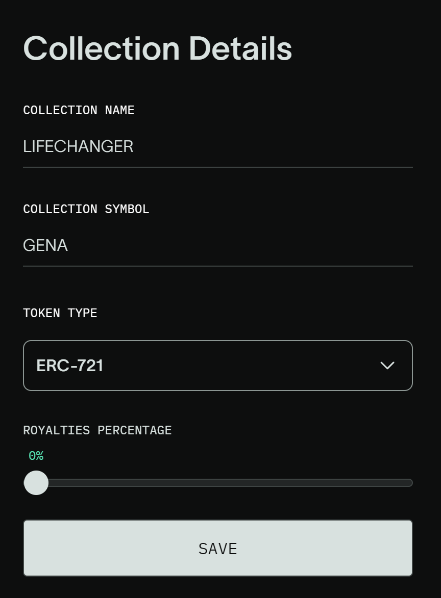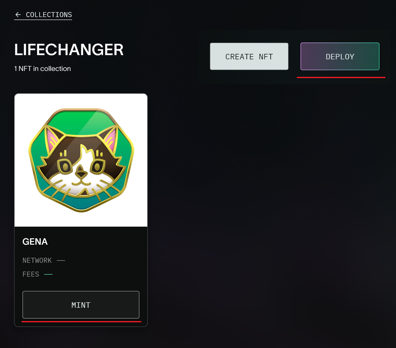 - Затем заполняйте детали вашей коллекции, сохраняйте изменения и жмите кнопку DEPLOY, а затем MINT.