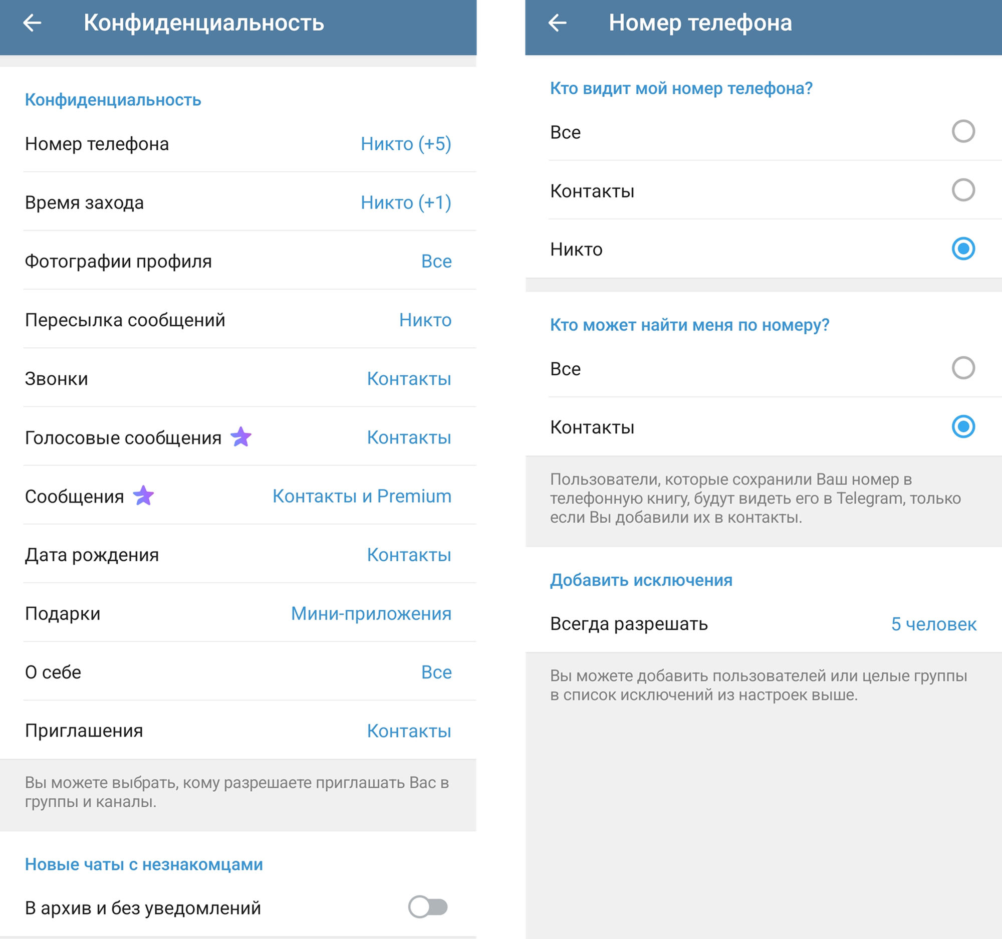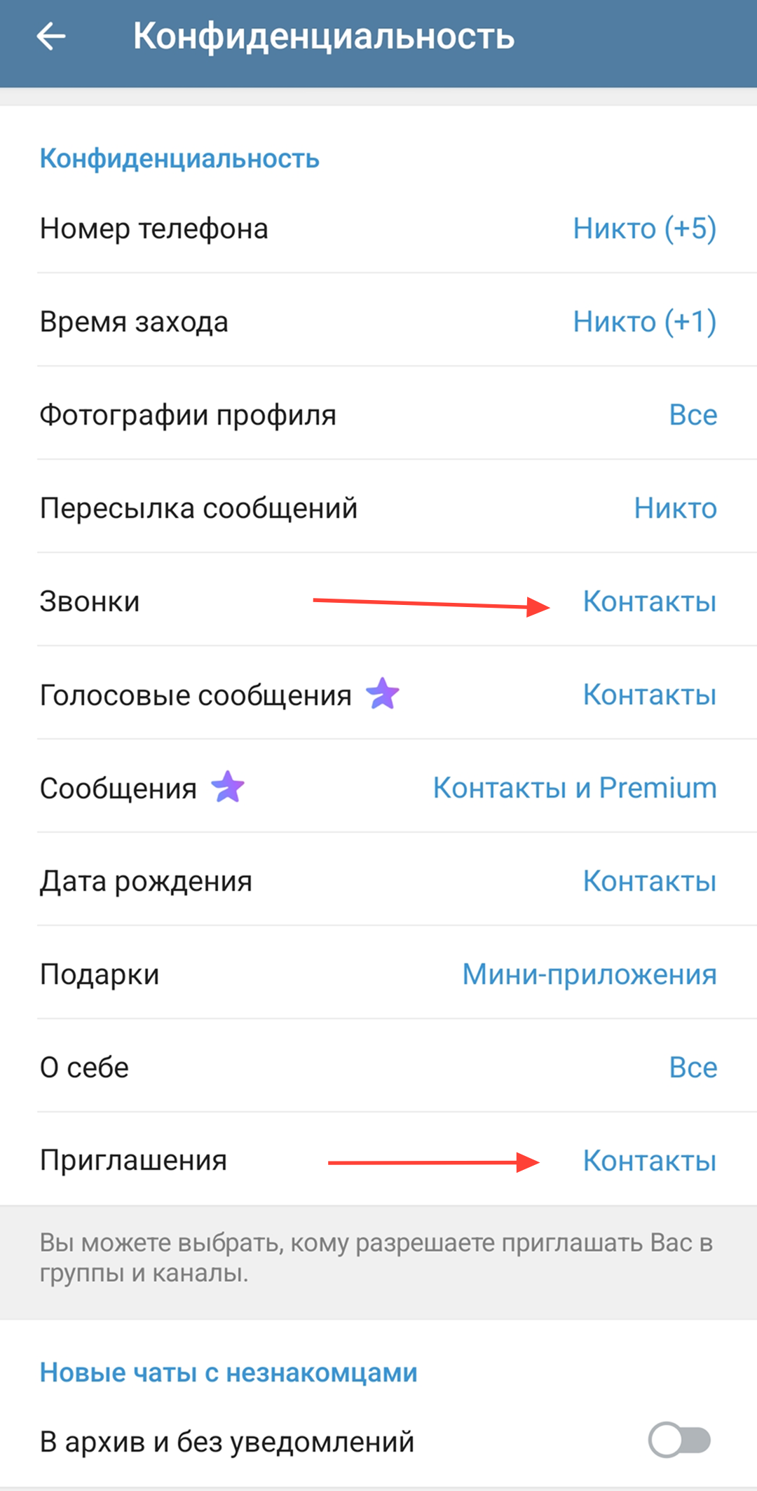 4) Отключи возможность дозваниваться в телеге и возможность приглашать тебя в группы: