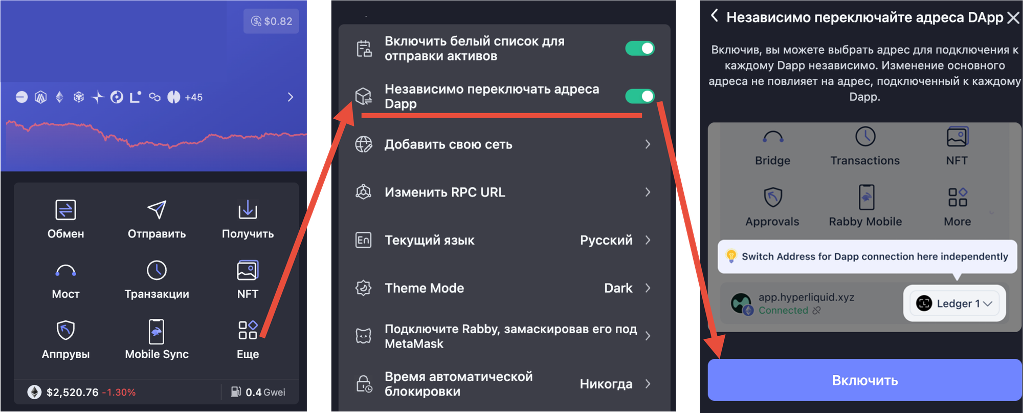 И чтобы не переключаться вручную между каждым кошельком, можно включить опцию автоматического переключения.