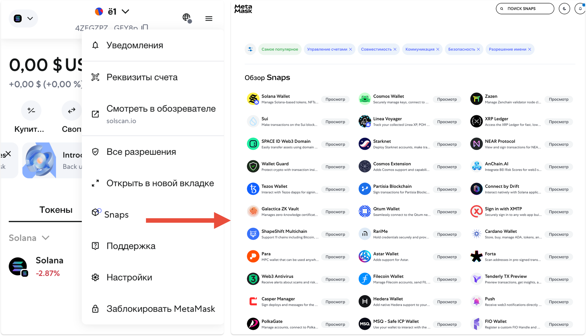 Данное решение подходит тем, кто не любит иметь много различных кошельков в браузере для работы с криптой. При этом важно учитывать, что иногда Snaps работают нестабильно.