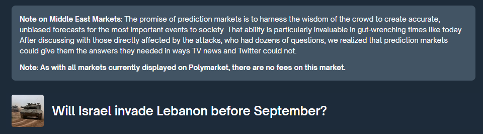 Данную идею Polymarket продвигает повсеместно и соответствующую плашку можно обнаружить на сайте: