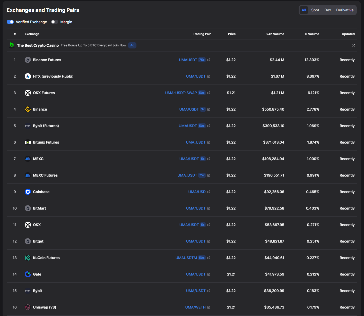 - Оспаривание может происходить до 5 раз, и если стейкеры UMA так и не смогут договориться (если ни один ответ не получит >50% голосов от общего кол-ва UMA в стейке), новые голосования приостанавливаются.