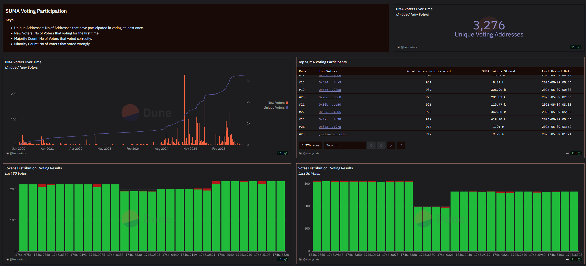 Здесь можете посмотреть кошельки всех стейкеров UMA: dune.com/uma_protocol/uma-protocol