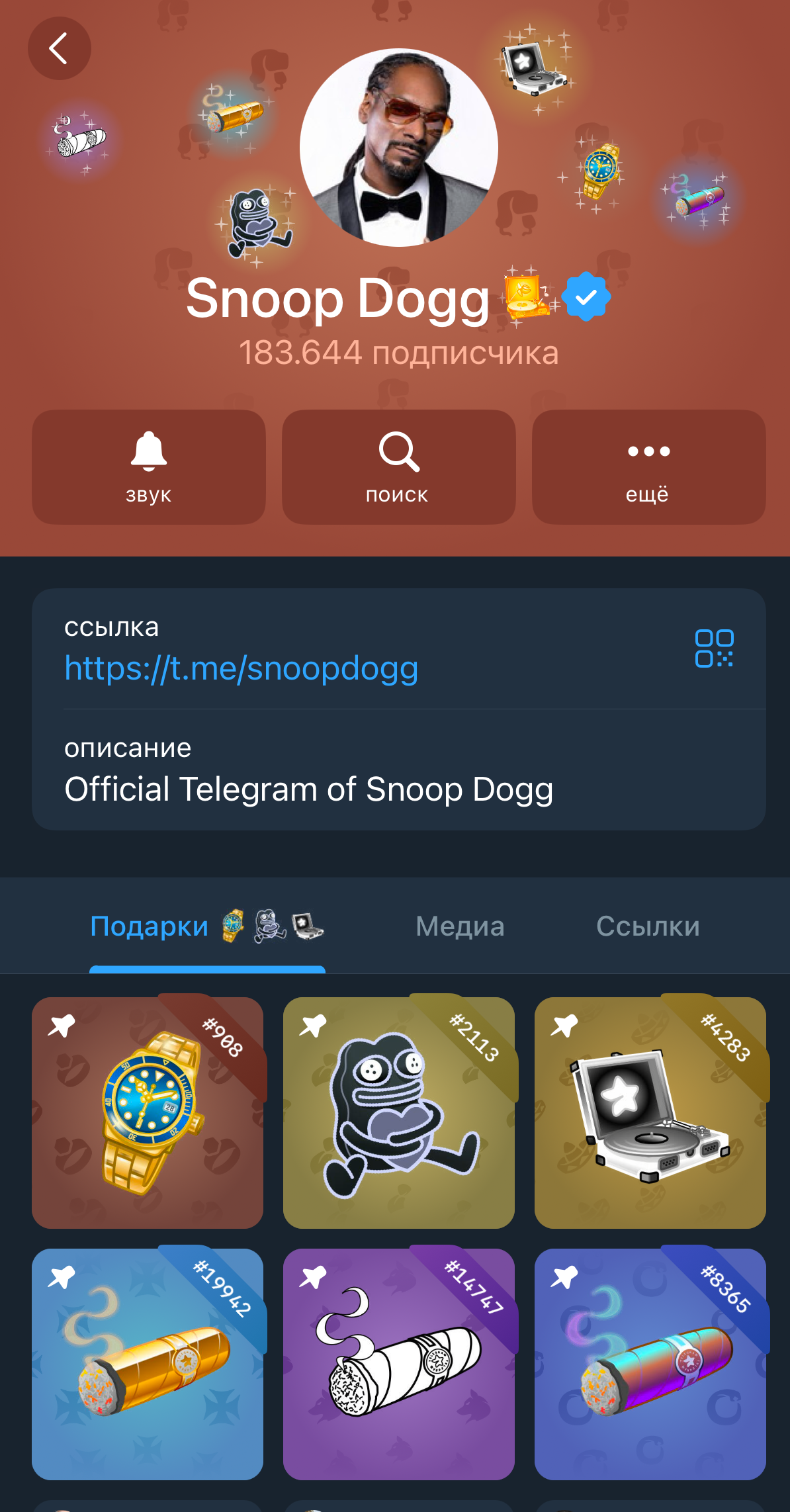 Telegram-подарки — это анимированная карточка (эмодзи), которая отображается в профиле пользователя во вкладке "Подарки":