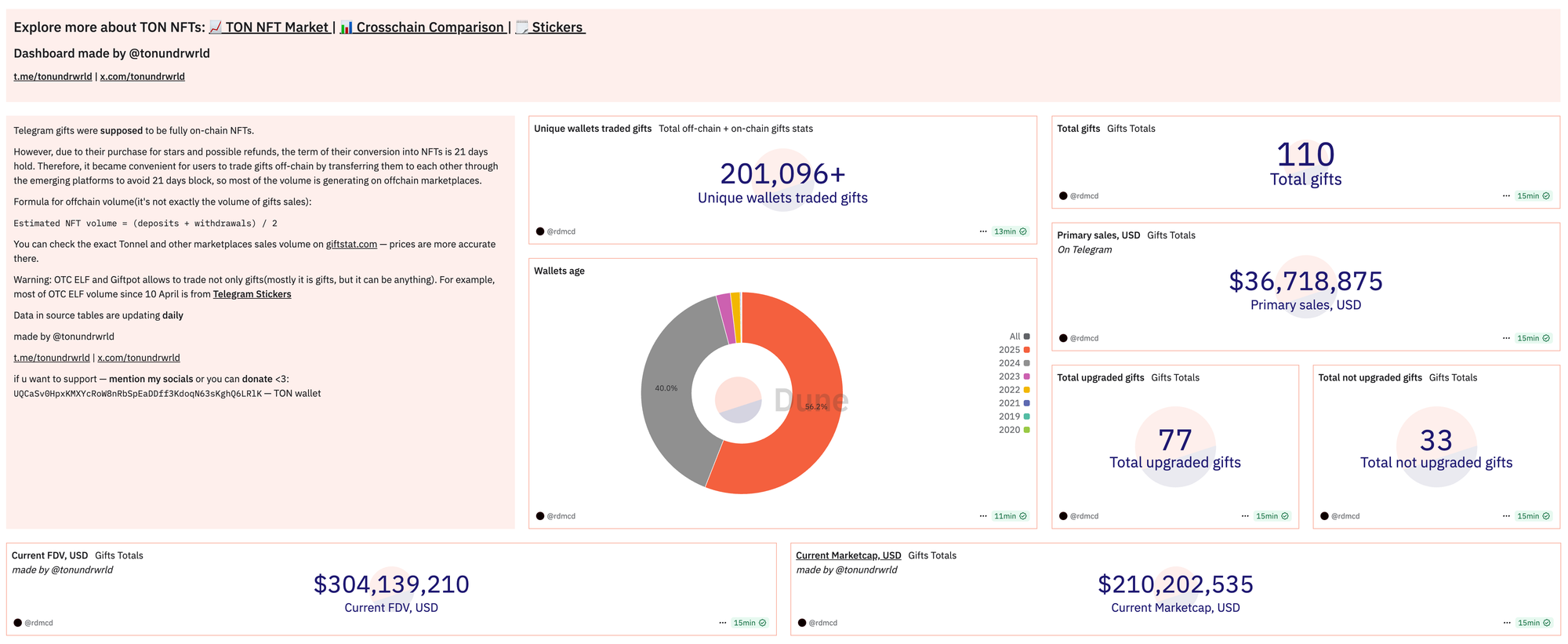 В данный момент капитализация подарков стремительно растет и на момент выхода статьи составляет около $205M (актуальные данные смотрите через этот дашборд).