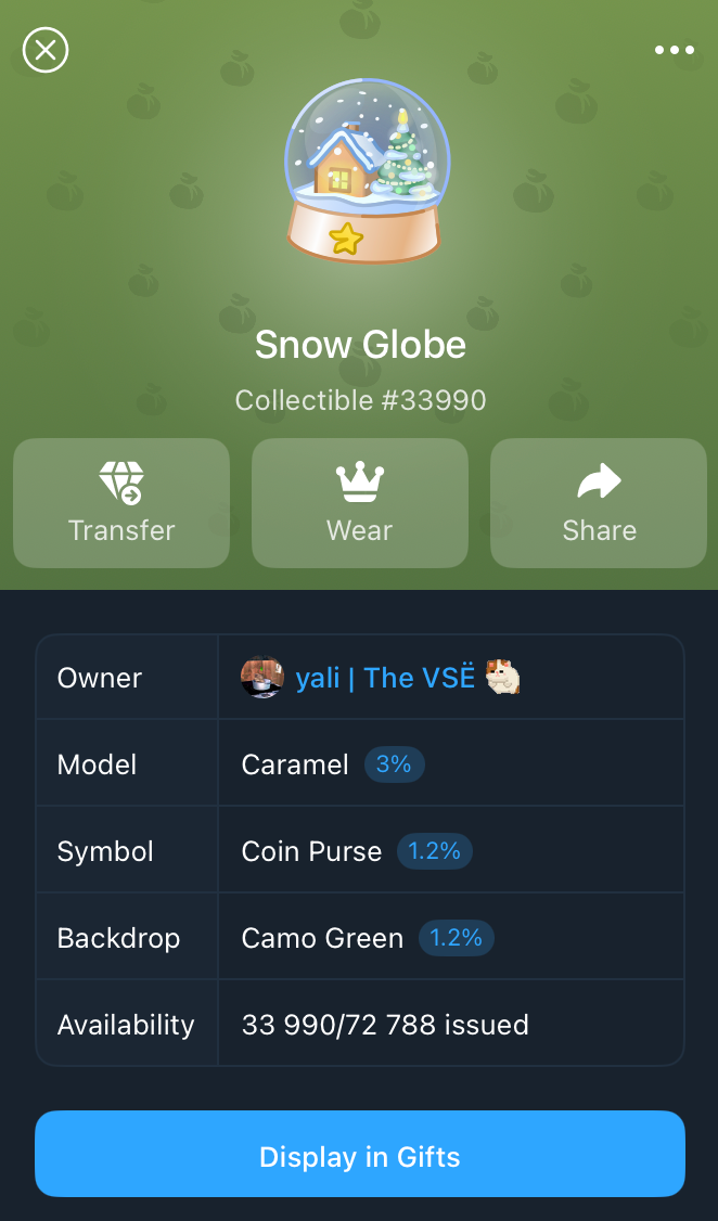 Изначально это был просто способ сделать подарок другому пользователю внутри TG, но позже функционал был расширен, позволив превращать подарки в полноценные NFT, которые уже имеют свои уникальные черты (трейты) при отображении в профиле: модель, фон, узор и количество.