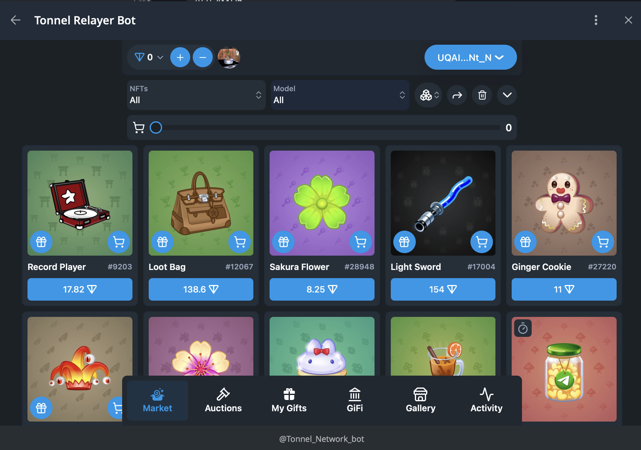 - Продажа только подарков, которые уже конвертированы в NFT и лежат на TON кошельке