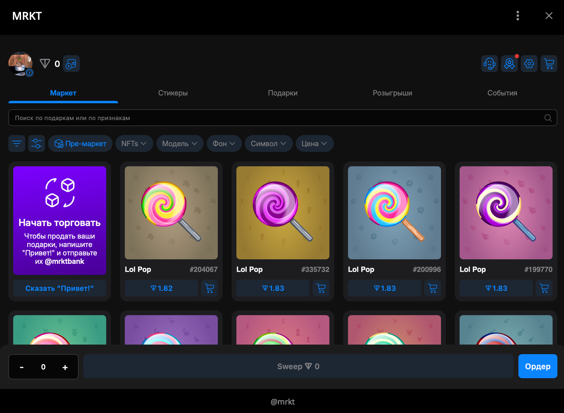 - Разнообразие инструментов: Можно использовать специальные фичи, такие как отложенные ордера на Tonnel либо снайпер-боты, чтобы приобретать подарки по выгодным ценам.