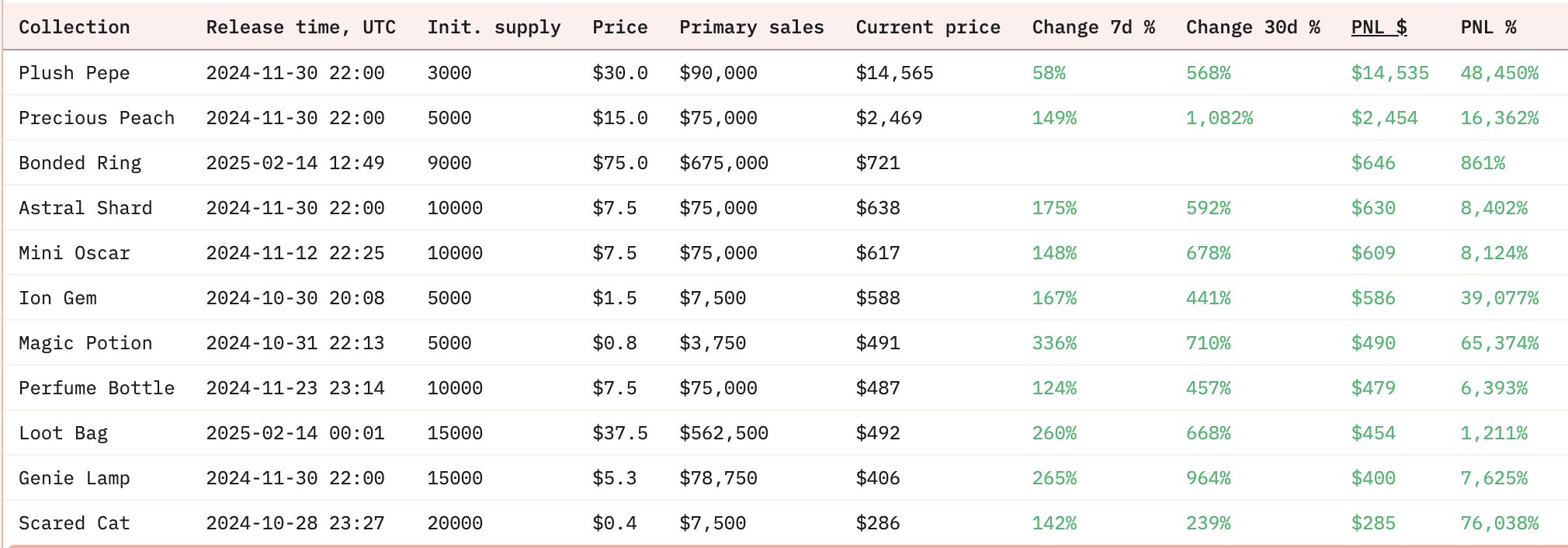 Более того, на рынке уже успели появиться OG-коллекции, которые всего за месяц-полтора сделали более 200 иксов и в моменте стоили вплоть до $37к