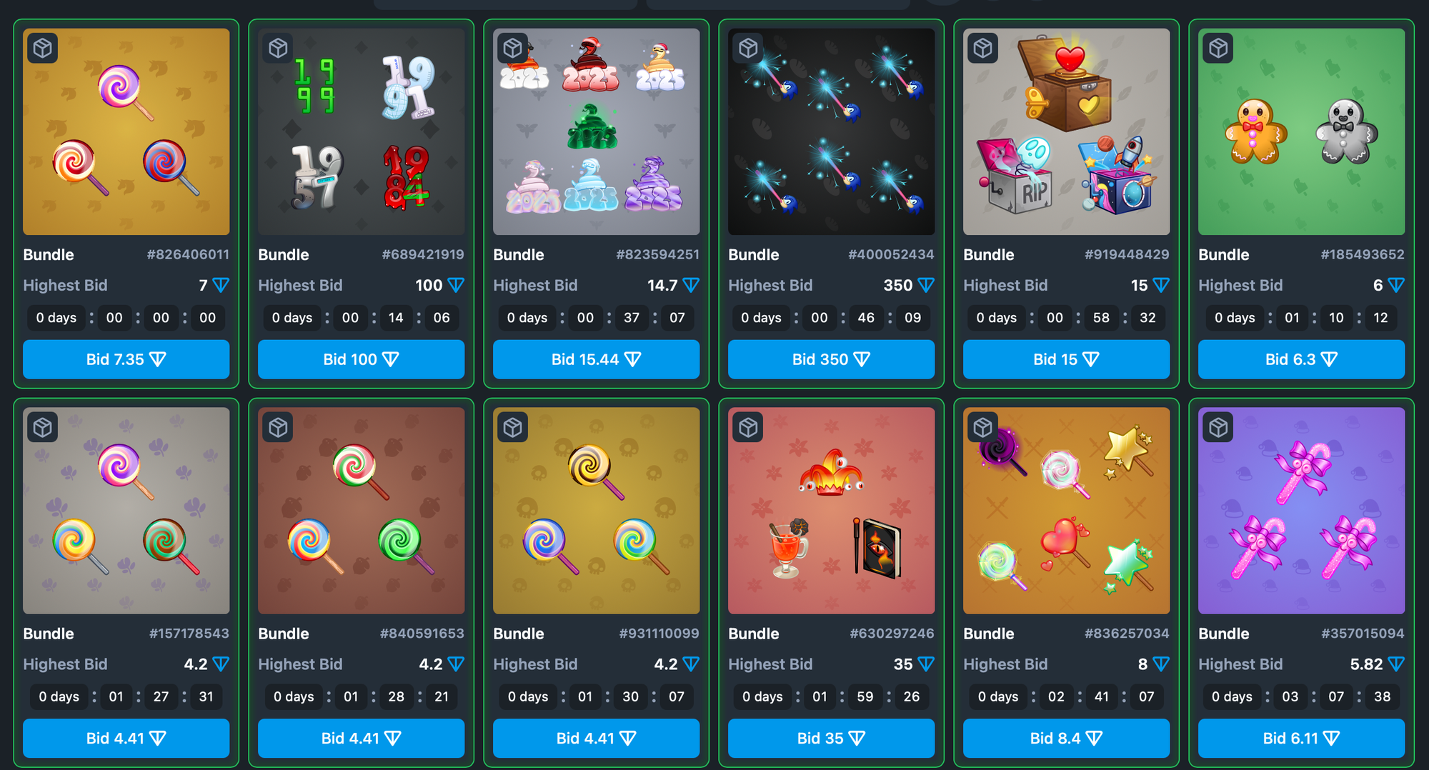 - бандлы – продажа нескольких подарков одним лотом