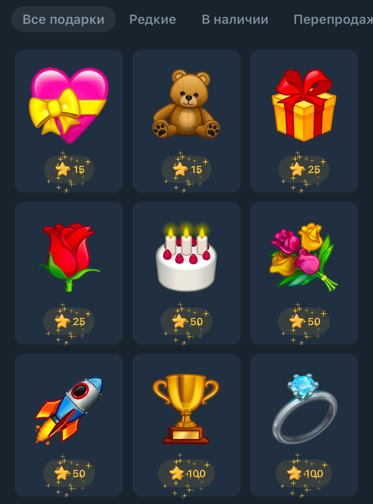 Изначально подарки покупаются исключительно за внутреннюю валюту телеграма – Stars.