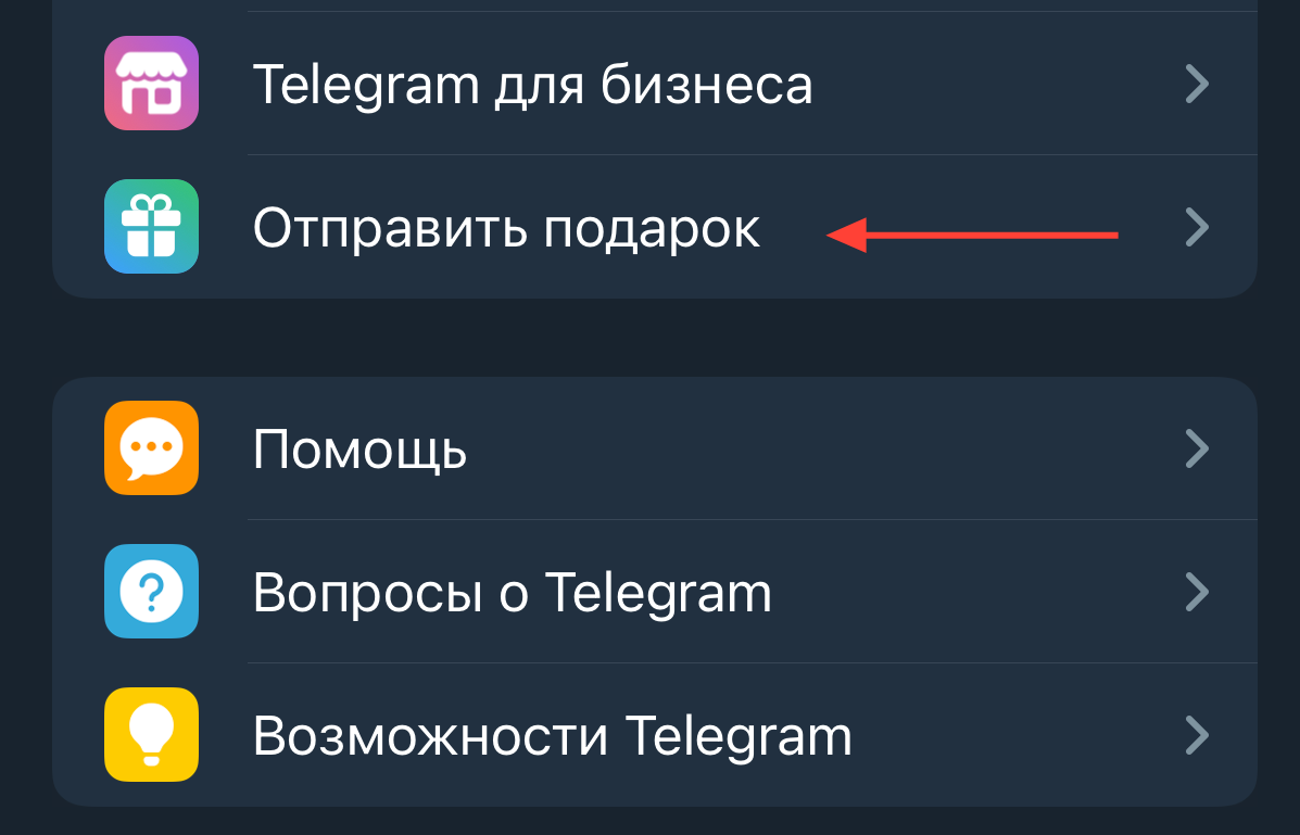 В настройках TG-профиля нажимаете на "Отправить подарок"