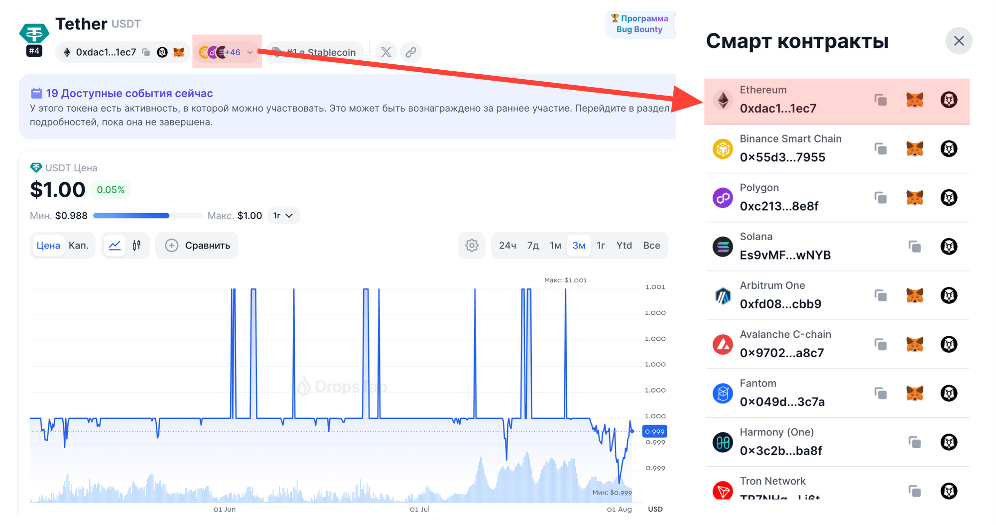 Нам важно выбрать именно контракт токена, а не адрес в сети.