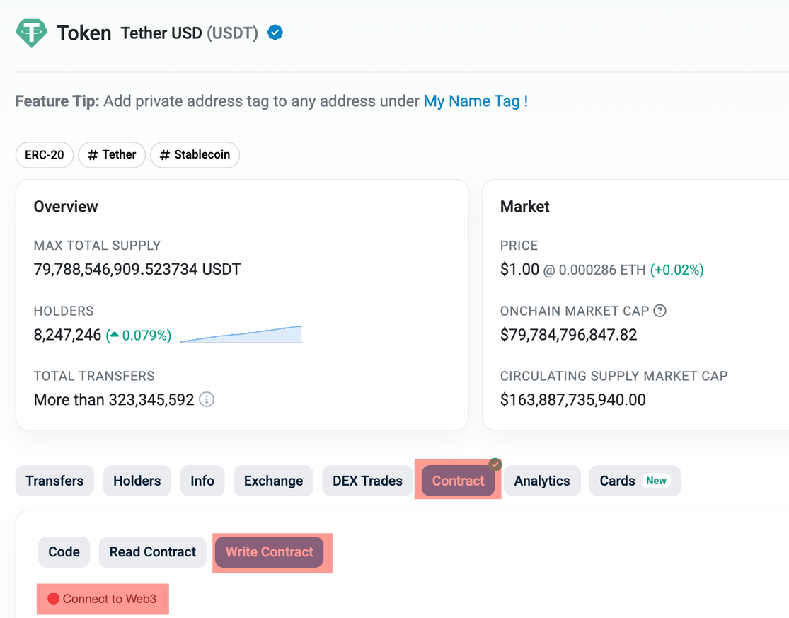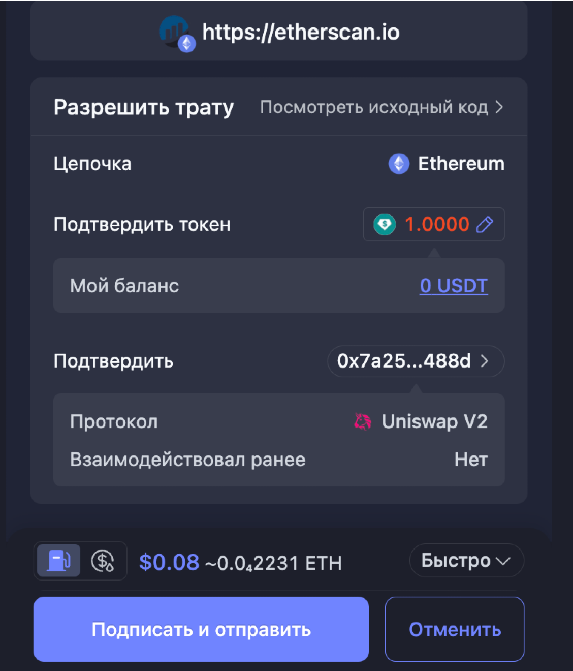 Мы воспользуемся контрактом Uniswap V2: Router 2 в качестве примера и вставим в строку _spender (address) на вкладке с апрувом средств.