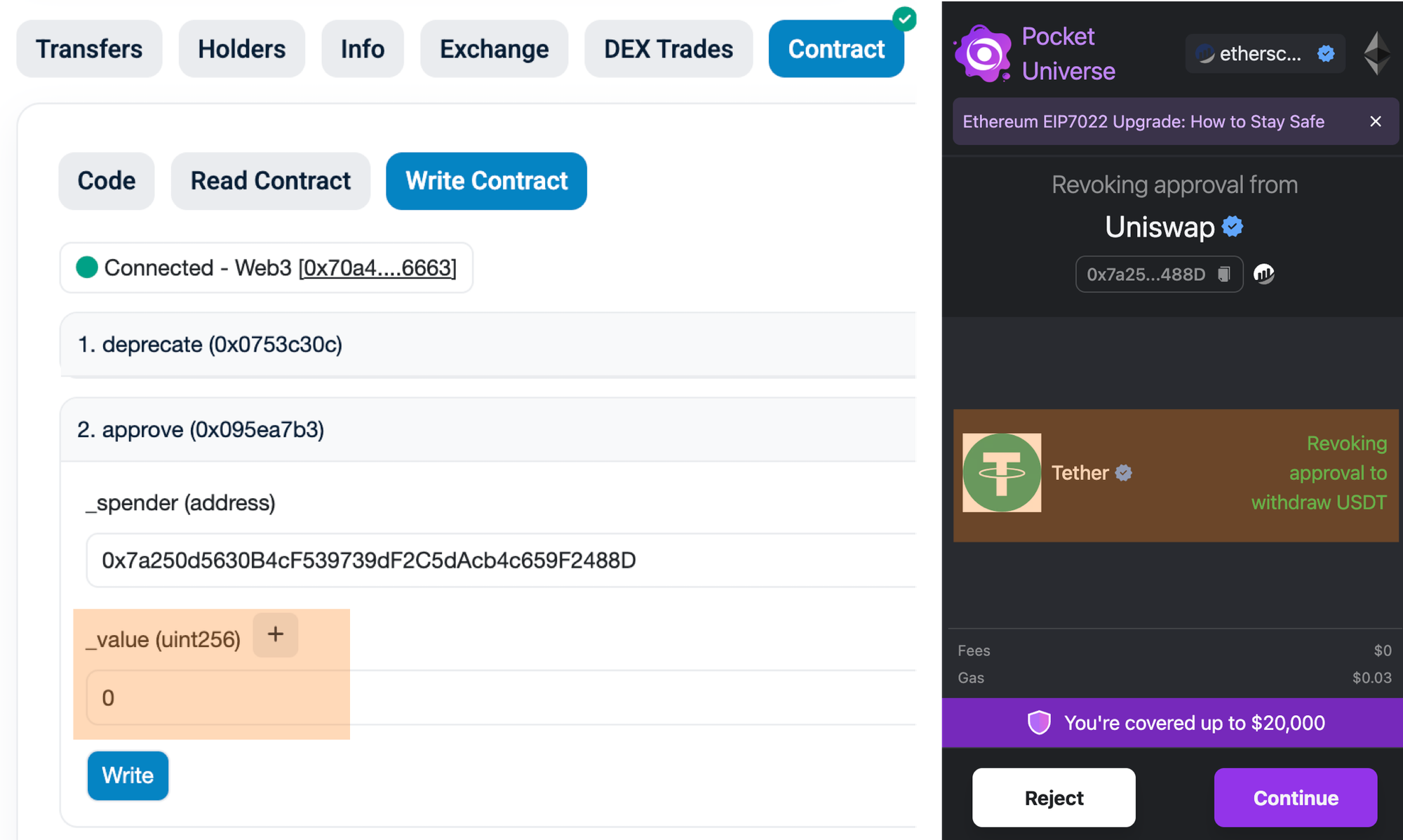 Другими словами таким образом можно отозвать апрув, или провести Revoke апрува, про что мы рассказывали в этом материале.