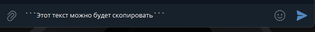 Копируемый текст: это скрытая функция ТГ, которая позволяет превратить текст в как бы в кнопку. В таком случае весь текст будет скопирован в буфер обмена всего одним кликом мыши или пальца.
