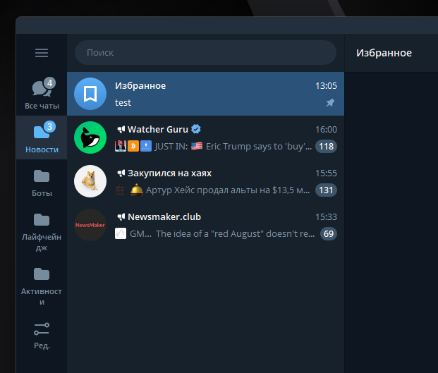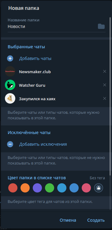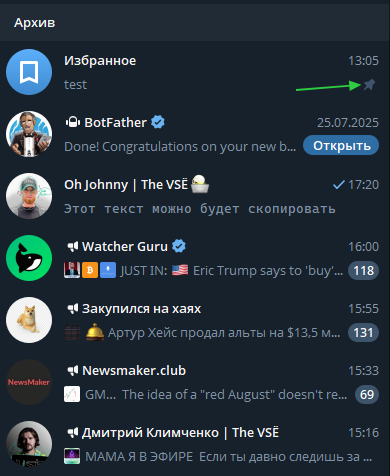 Это одна из лучших функций ТГ, особенно если у вас накопилось уже более 20 чатов и каналов.