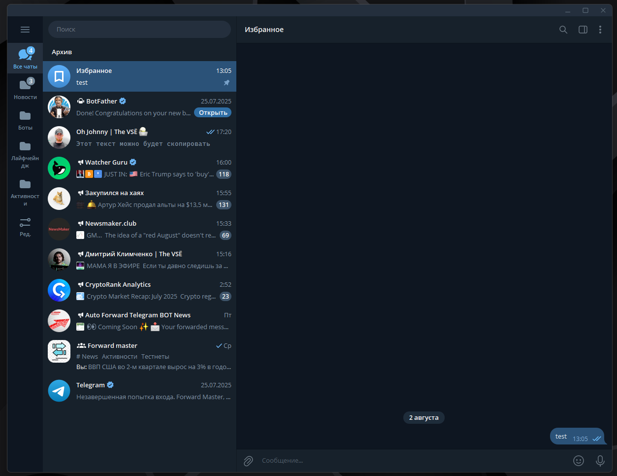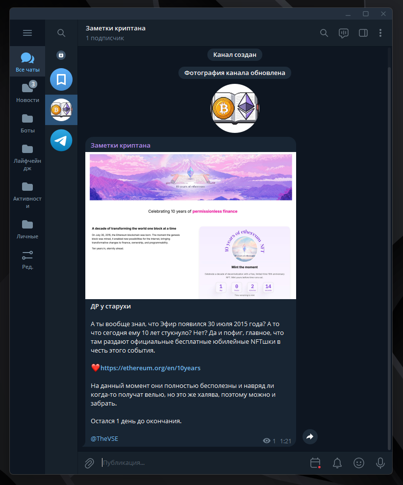 Как видите Telegram это поистине мощнейшее приложение, а не просто мессенджер, с помощью которого можно делать все, что угодно не выходя за пределы экосистемы. А когда вы наведете порядок в папках, получать информацию о криптовалюте станет гораздо приятнее.