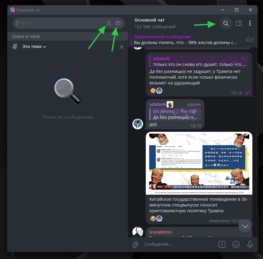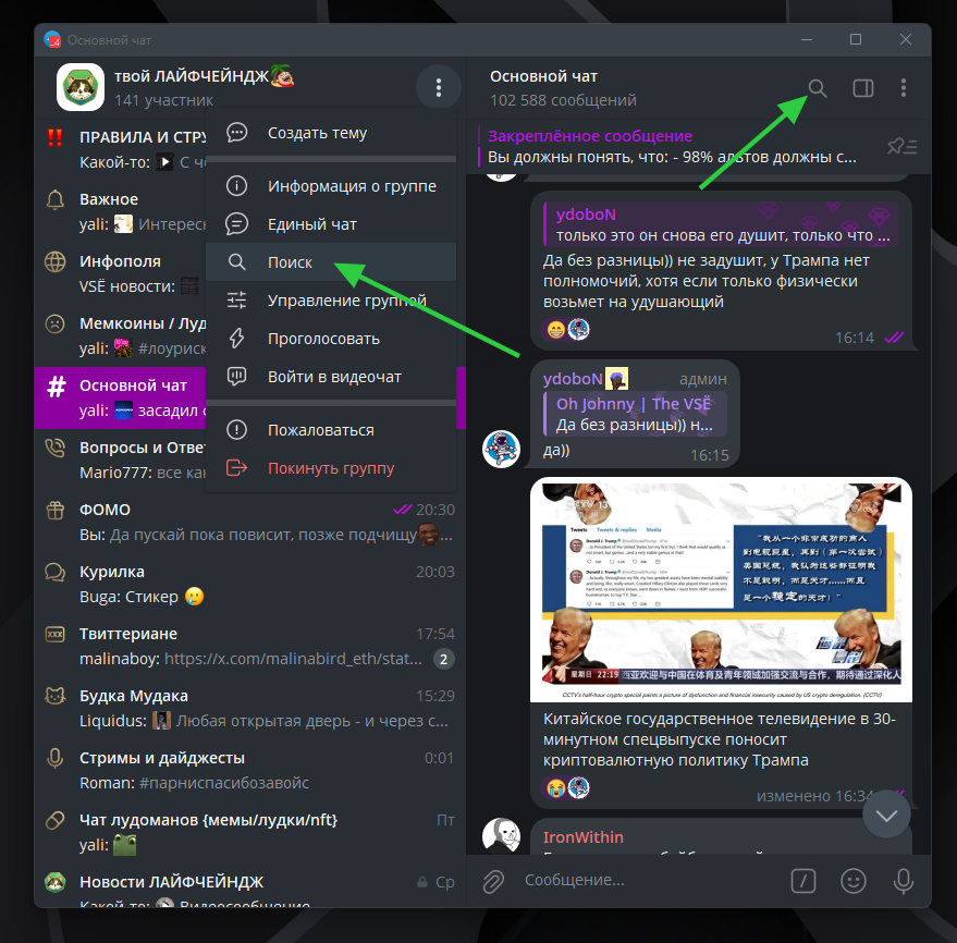 - Не забывайте про закрепленные сообщения, в чатах, каналах и в личных беседах. Старайтесь ознакомится с этой информацией, так как закрепляют обычно что-то важное.