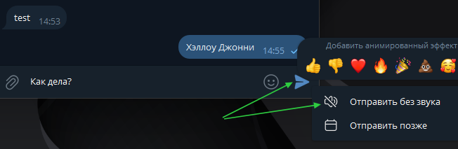 Казалось бы, что здесь сложного, каждый из вас отправляет десятки и сотни сообщений в день. Однако и здесь ТГ предлагает дополнительные возможности.