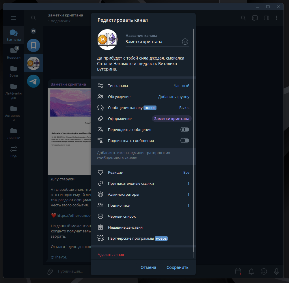 Вдаваться в историю развития мессенджера и его основателя мы не будем: при желании вы можете прочитать об этом в интернете. В этой статье мы углубимся в настройки, кастомизацию, лайфхаки и рассмотрим Telegram как один из основных инструментов для криптана, а также наведем порядок и организуем потоки информации.