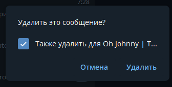 Также вы можете удалять и закреплять сообщения через это меню, причем удаление доступно у обоих участников. То есть собеседник не увидит сообщение, которые вы удалили у себя и у него.