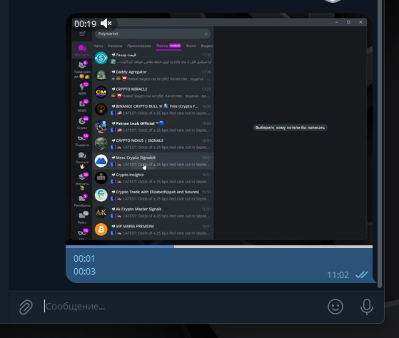 - Видео сообщения (или "кружочки"): короткие видео в форме круга. Быстро нажмите на значок микрофона, чтобы переключиться в режим видео. Также работают функции пауза и запись без удержания, как в случае с голосовыми сообщениями.